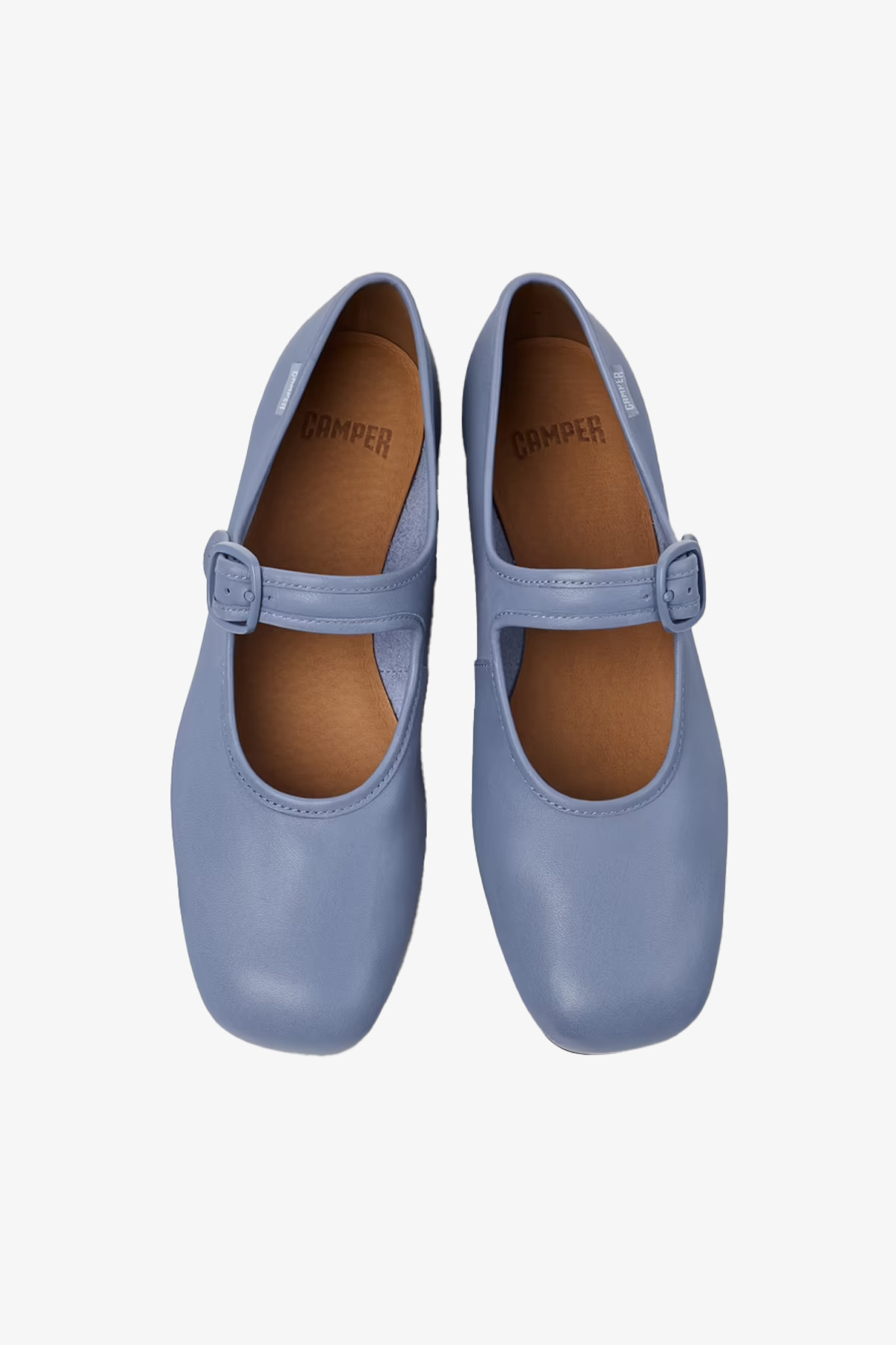 OrthoLite® Recycled™ tabanlık ve %20 geri dönüştürülmüş TPU dış tabana sahip, mavi dana derisi kadın ayakkabısı.