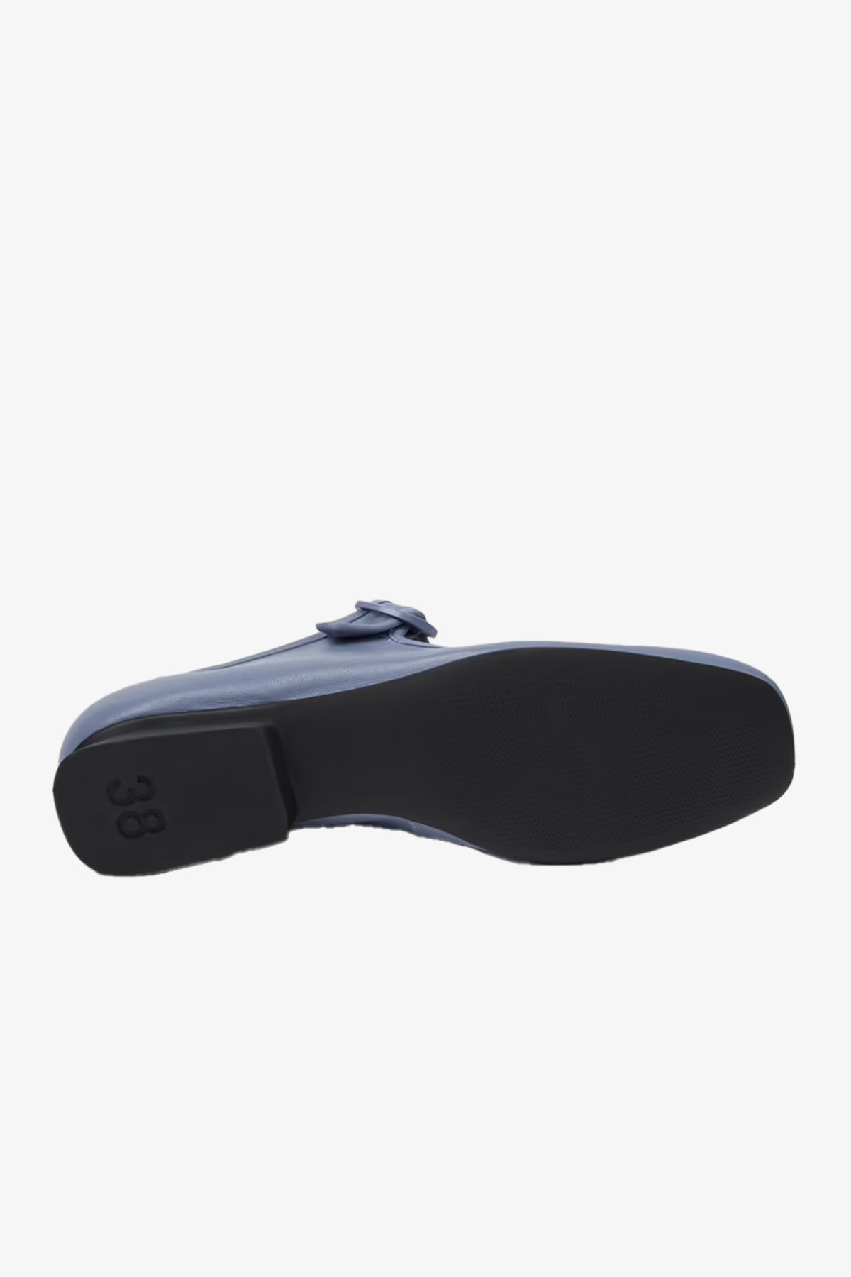 Gelince Haber VerOrthoLite® Recycled™ tabanlık ve %20 geri dönüştürülmüş TPU dış tabana sahip, mavi dana derisi kadın ayakkabısı.