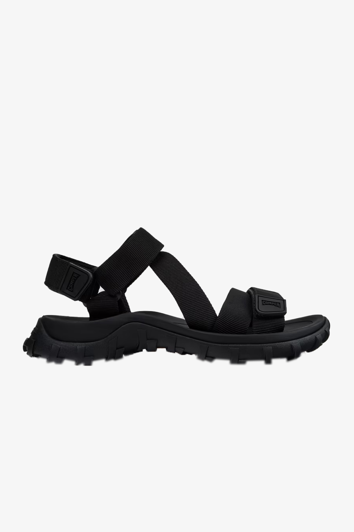 Gelince Haber VerErkekler için siyah tekstil sandaletler, çıkarılamayan anatomik iç taban, cırt cırtlı sistem, EVA orta taban ve Vibram® kauçuk dış taban ile donatılmıştır.