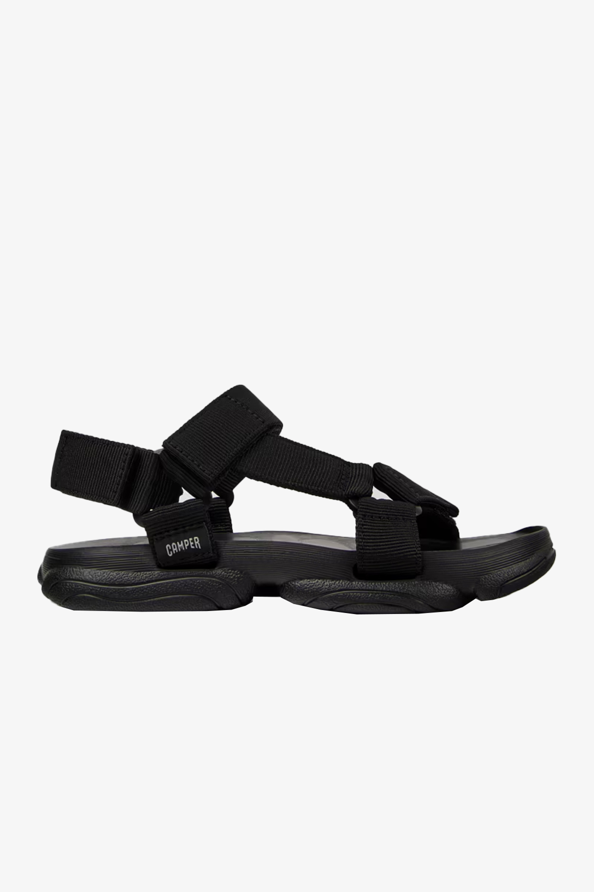 Gelince Haber VerKadınlar için siyah tekstil sandaletler, cırt cırtlı kapama ve %20 geri dönüştürülmüş XL EXTRALIGHT® EVA Dual-Canal dış tabanlara sahip.