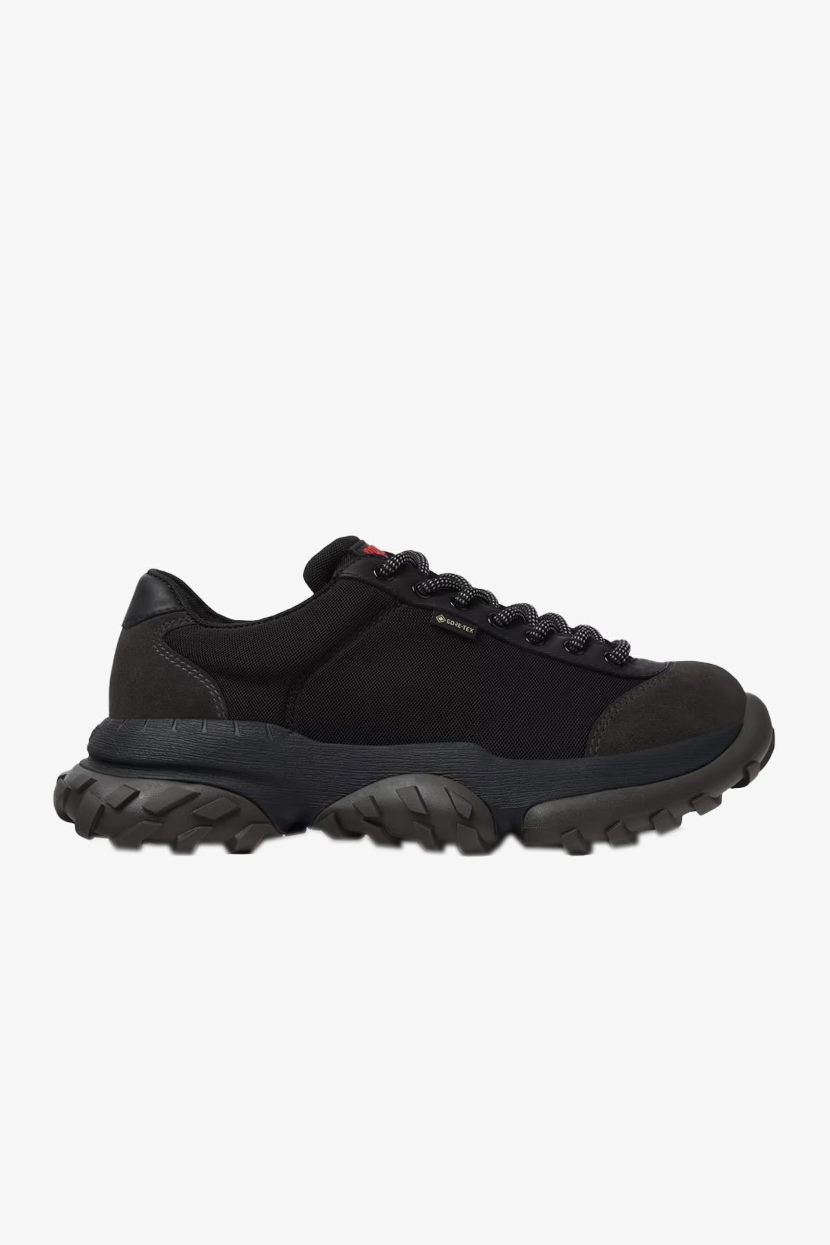 GORE-TEX® ePE membranlı, OrthoLite® Recycled™ tabanlıklı, ReXarge orta tabanlı ve %30 geri dönüştürülmüş Vibram dış tabanlı çok renkli kumaş ve nubuk erkek spor ayakkabısı.
