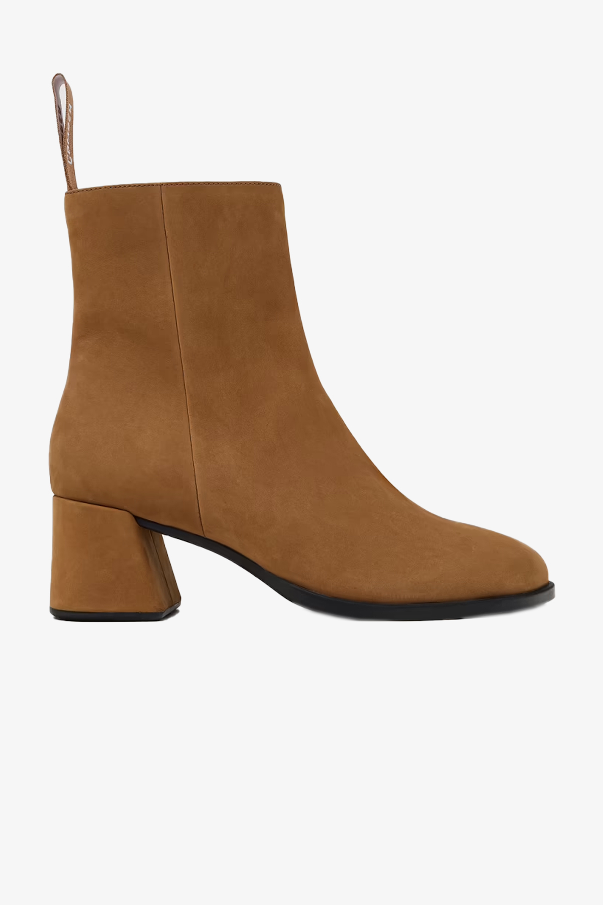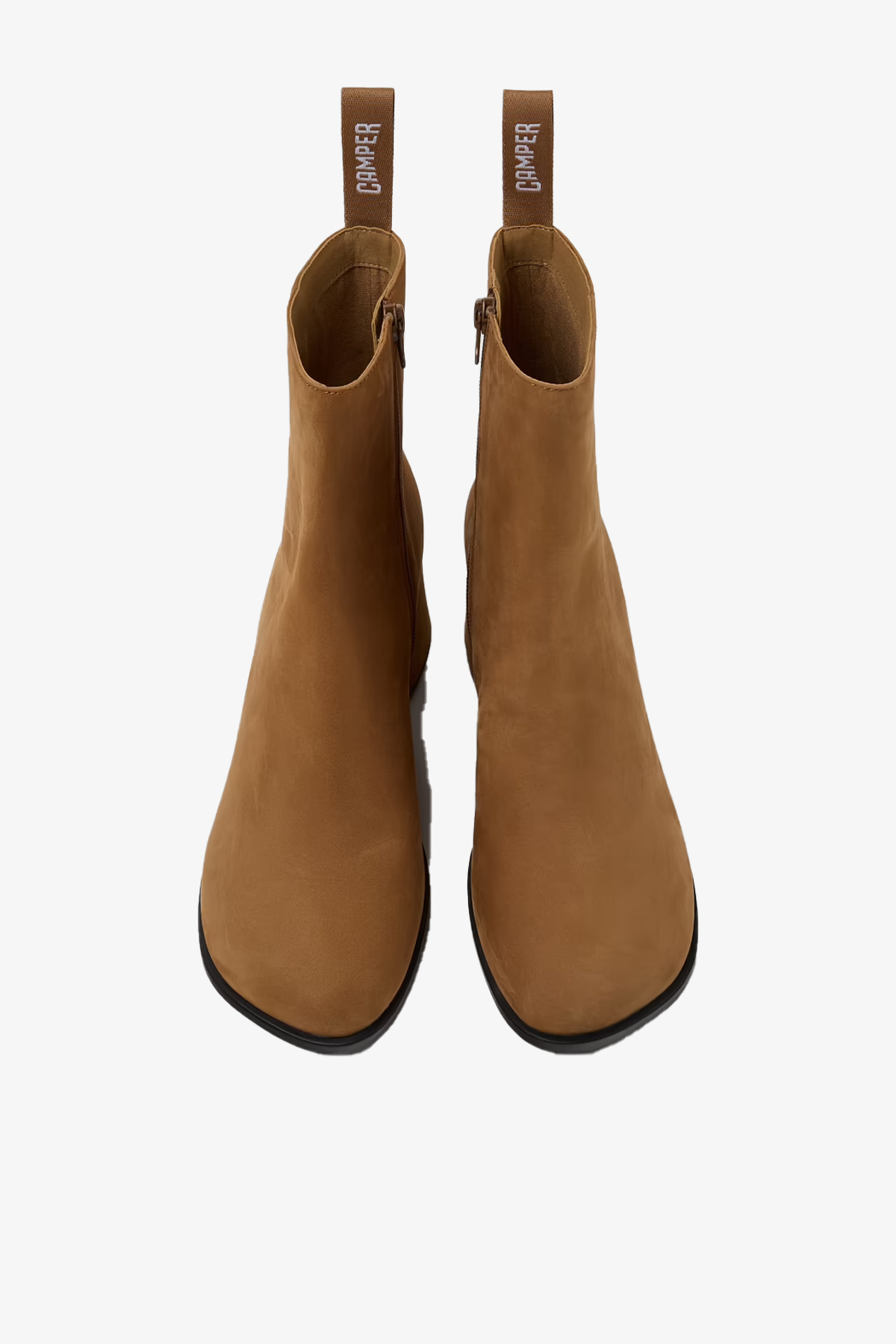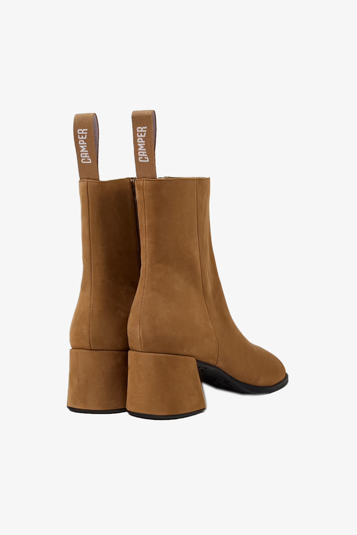 OrthoLite® Recycled™ tabanlık ve kauçuk ve ABS dış tabana sahip, kahverengi nubuk orta boy kadın botu.