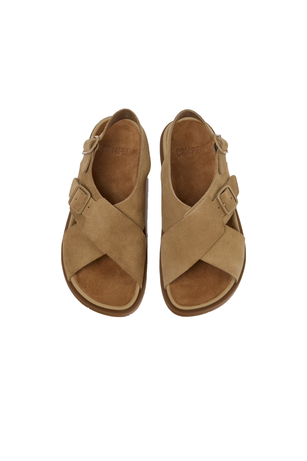 Kadınlar için kahverengi dana süeti sandaletler, çıkarılamayan PU iç tabanlara ve kauçuk dış tabanlara sahiptir.