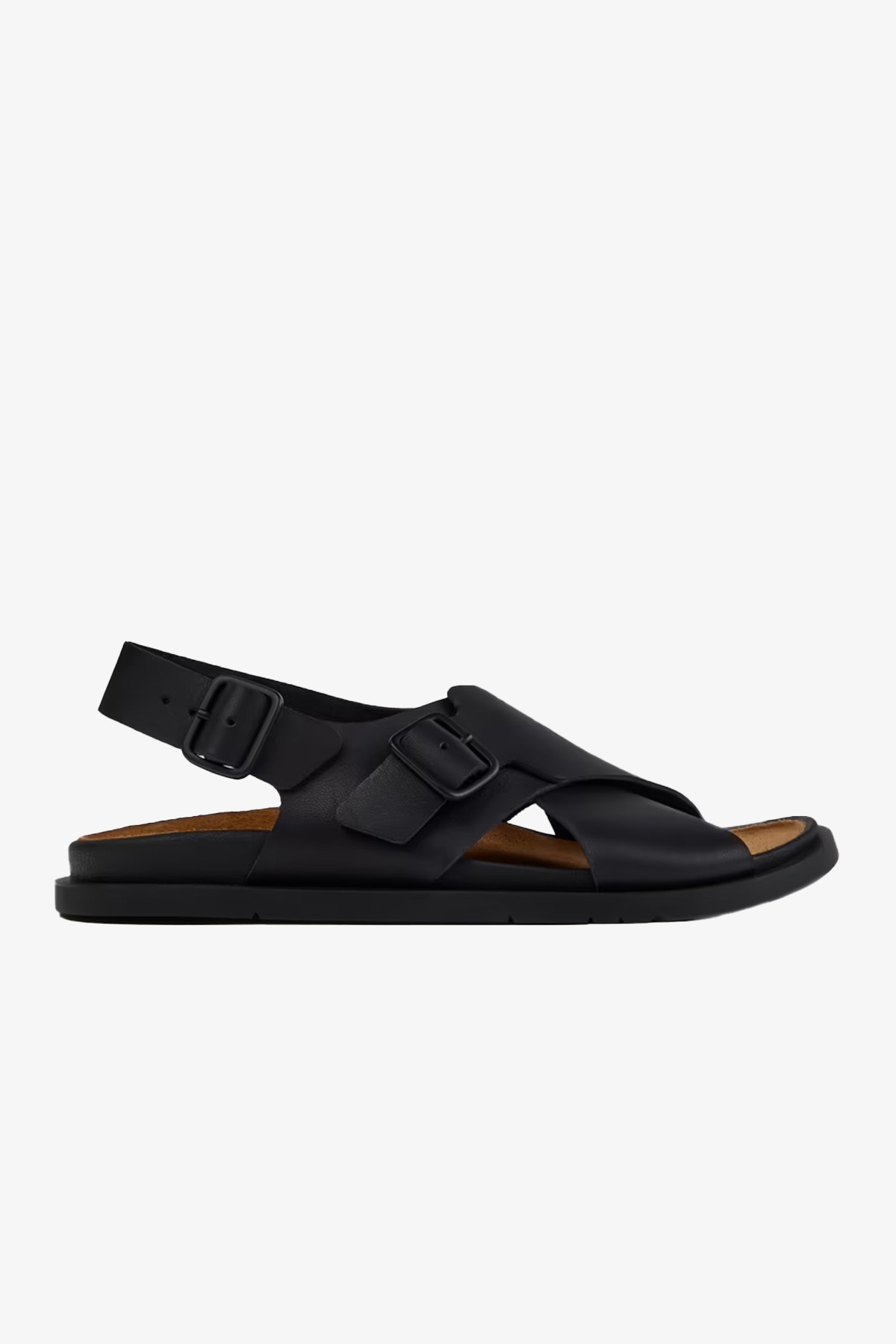 Gelince Haber VerKadınlar için siyah dana derisi sandaletler, çıkarılamayan PU iç tabanlara ve kauçuk dış tabanlara sahiptir.