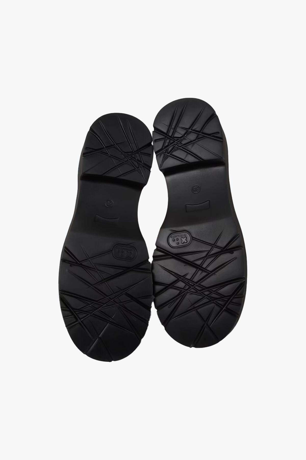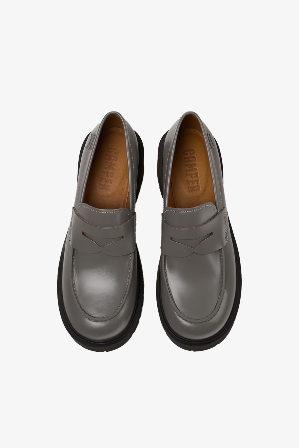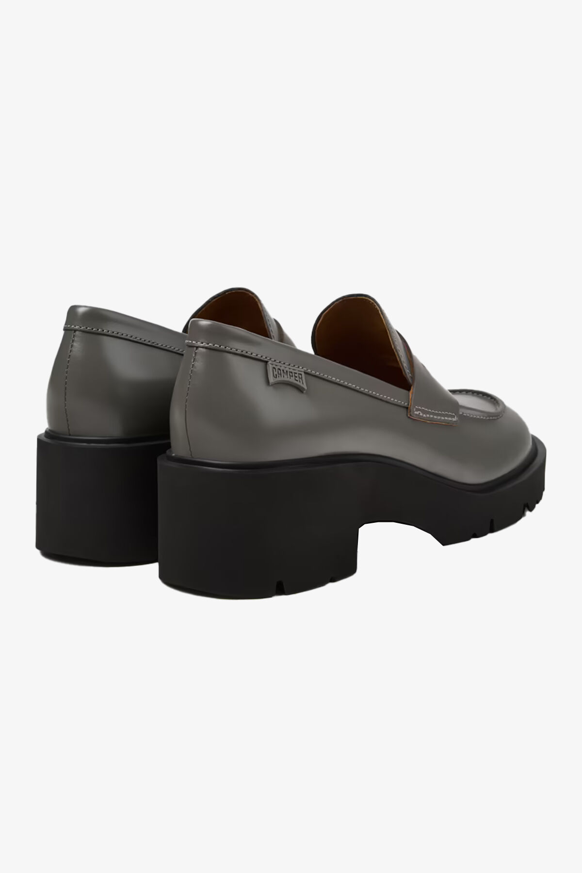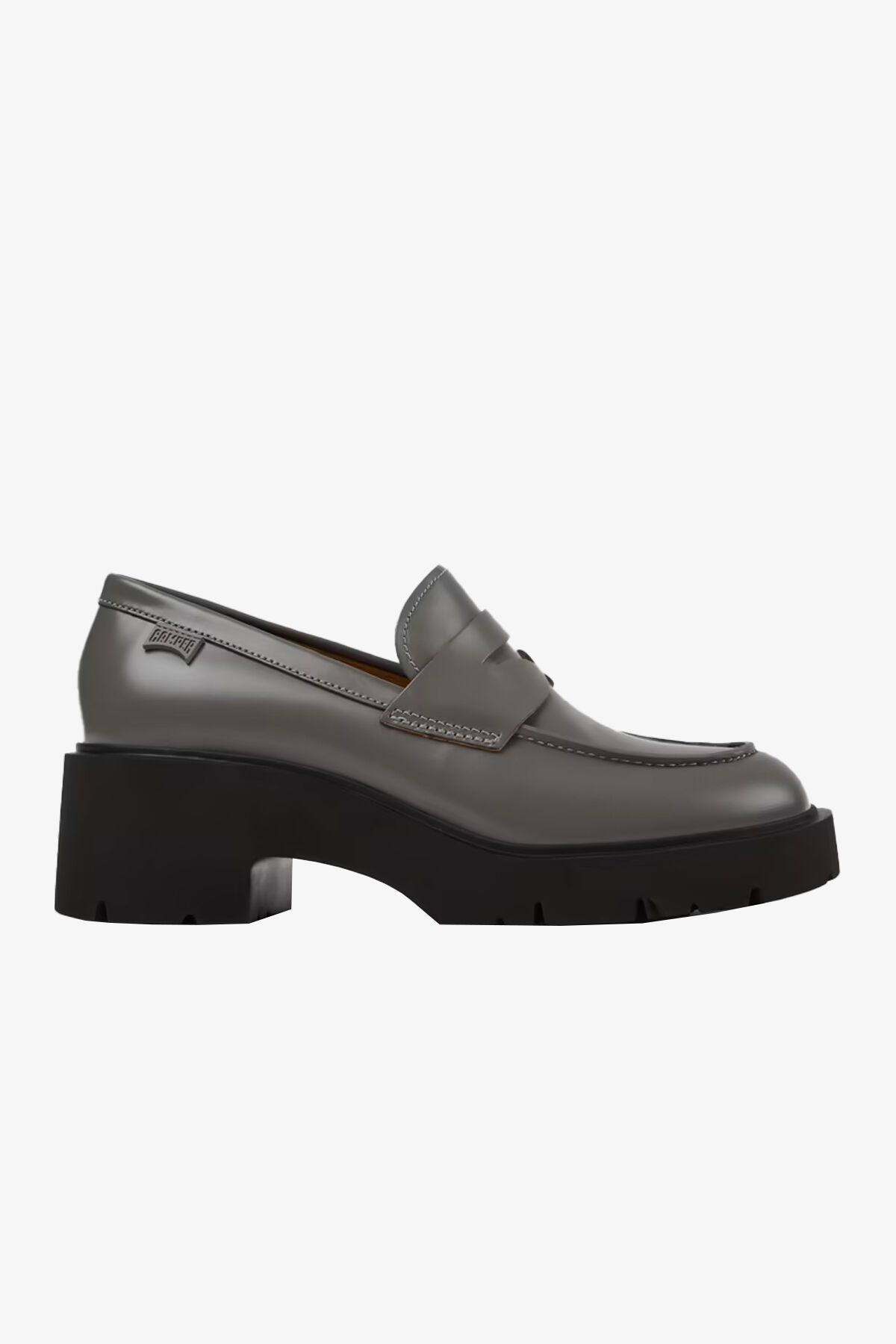Gri deri kadın mokasenler, EVA tabanlar ile.Milah, ekstra tavır için kalın tabanıyla günlük bir tarz.