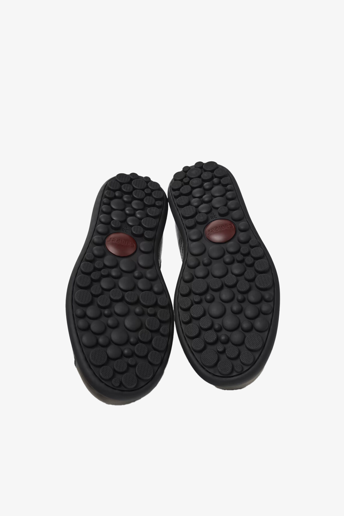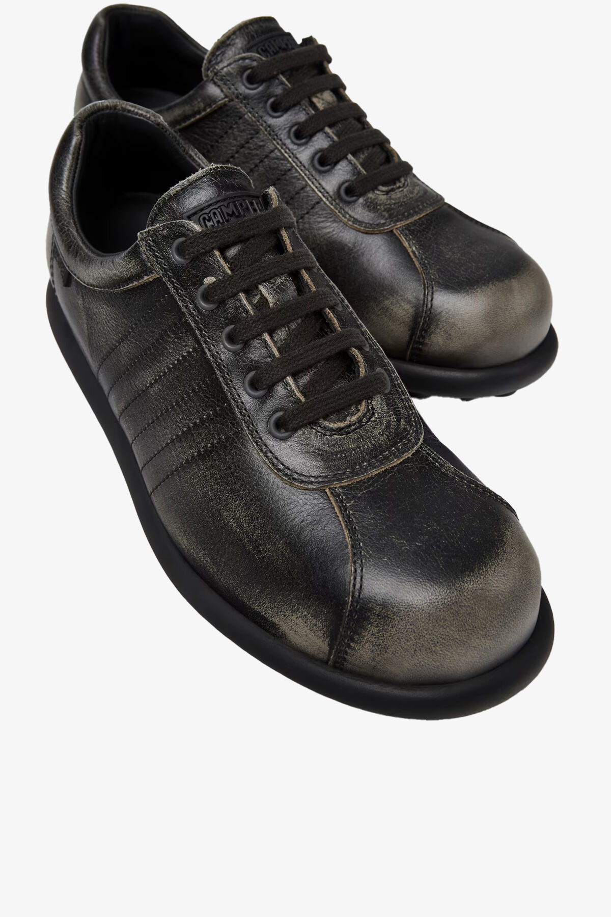 Pelotas Ariel, en ikonik Camper tarzımızdır. 87 kürenin oluşturduğu sportif tarzıyla tanınan bu model, her bir çift Avrupa derilerinden elde üretilmiş ve orijinal kauçuk tabana 360º dikişle bağlanmıştır.