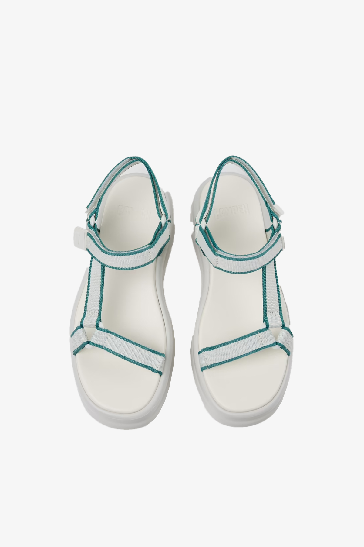Gelince Haber VerKadınlar için beyaz ve yeşil kumaş sandaletler; çıkarılamayan EVA iç tabanlara, cırt cırtlı kapama sistemine ve XL EXTRALIGHT® EVA dış tabanlara sahiptir.