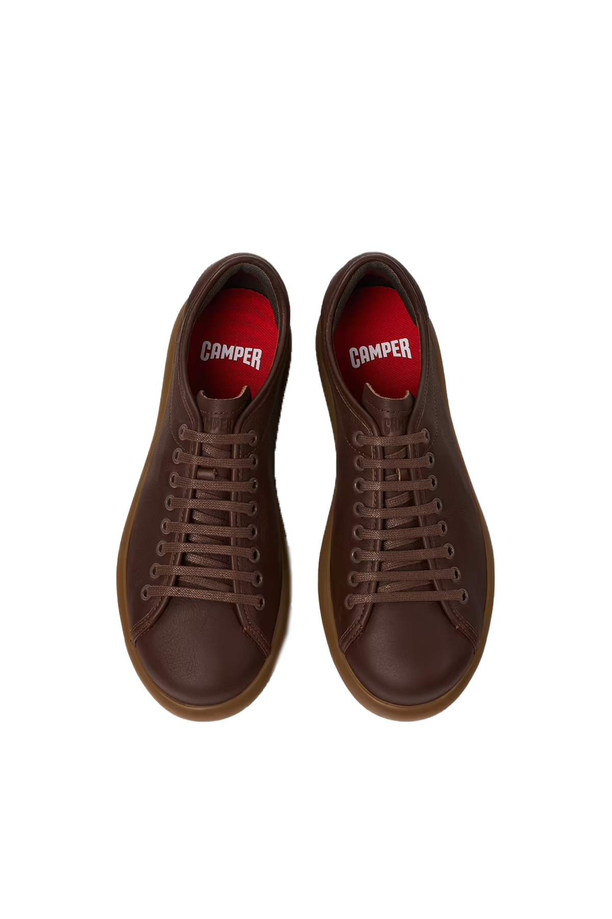 Çıkarılabilir OrthoLite® Recycled™ iç tabanlık ve kauçuk dış tabana sahip, erkekler için kahverengi dana derisi spor ayakkabı.