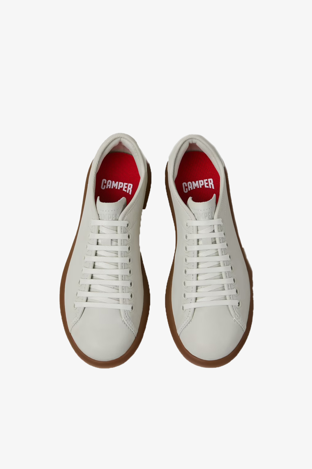 Kadınlar için beyaz, boyasız dana derisinden spor ayakkabılar; çıkarılabilir OrthoLite® Recycled™ iç tabanlara ve kauçuk dış tabanlara sahiptir.