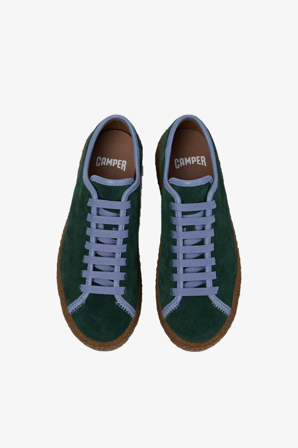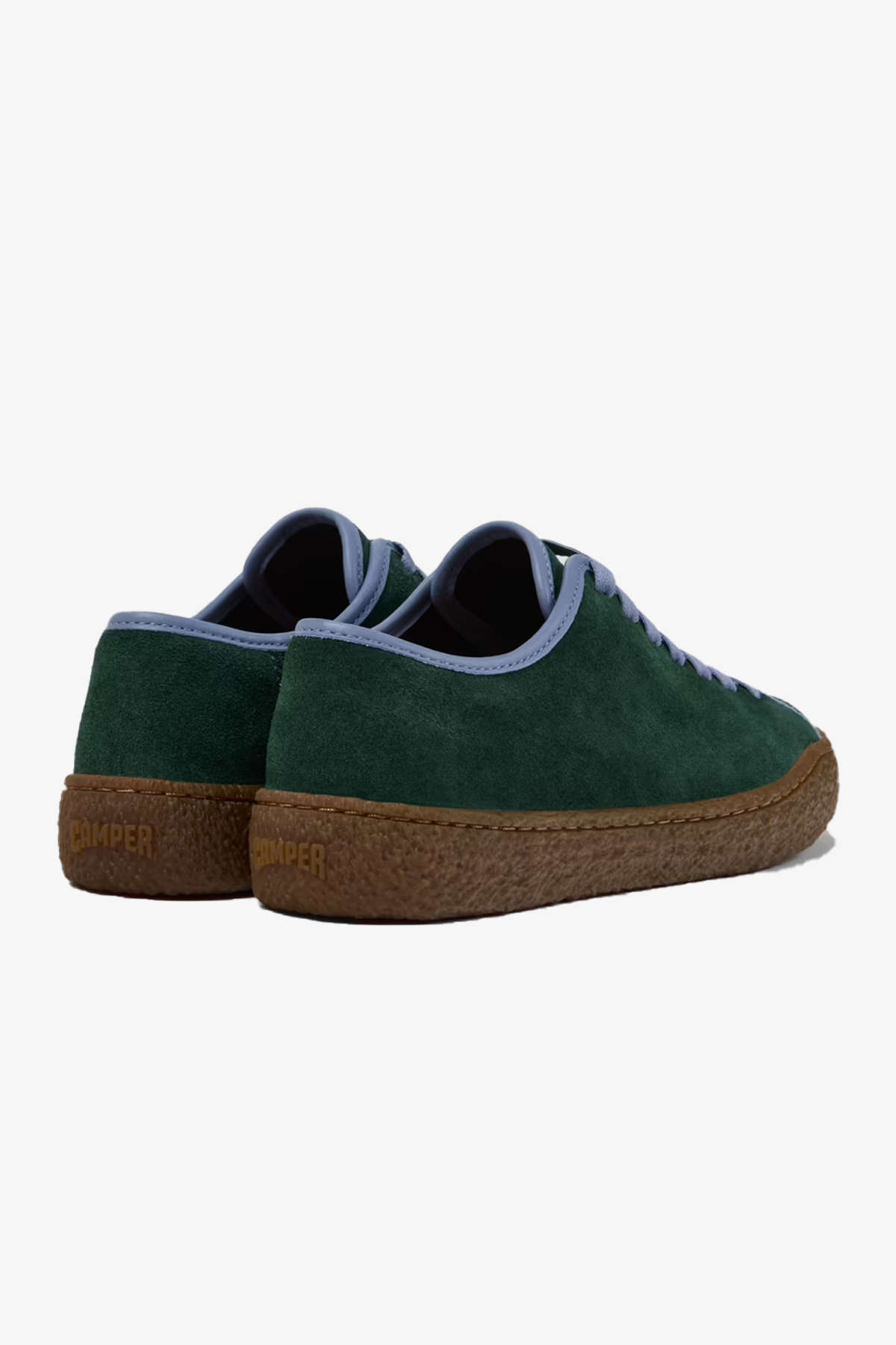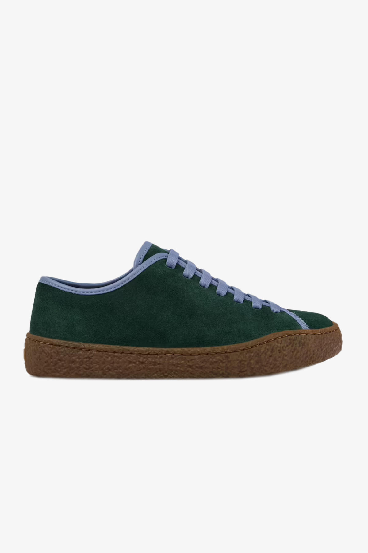 OrthoLite® Recycled™ tabanlıklı ve kauçuk dış tabanlı, yeşil ve mavi dana derisi ve nubuk kadın ayakkabısı.