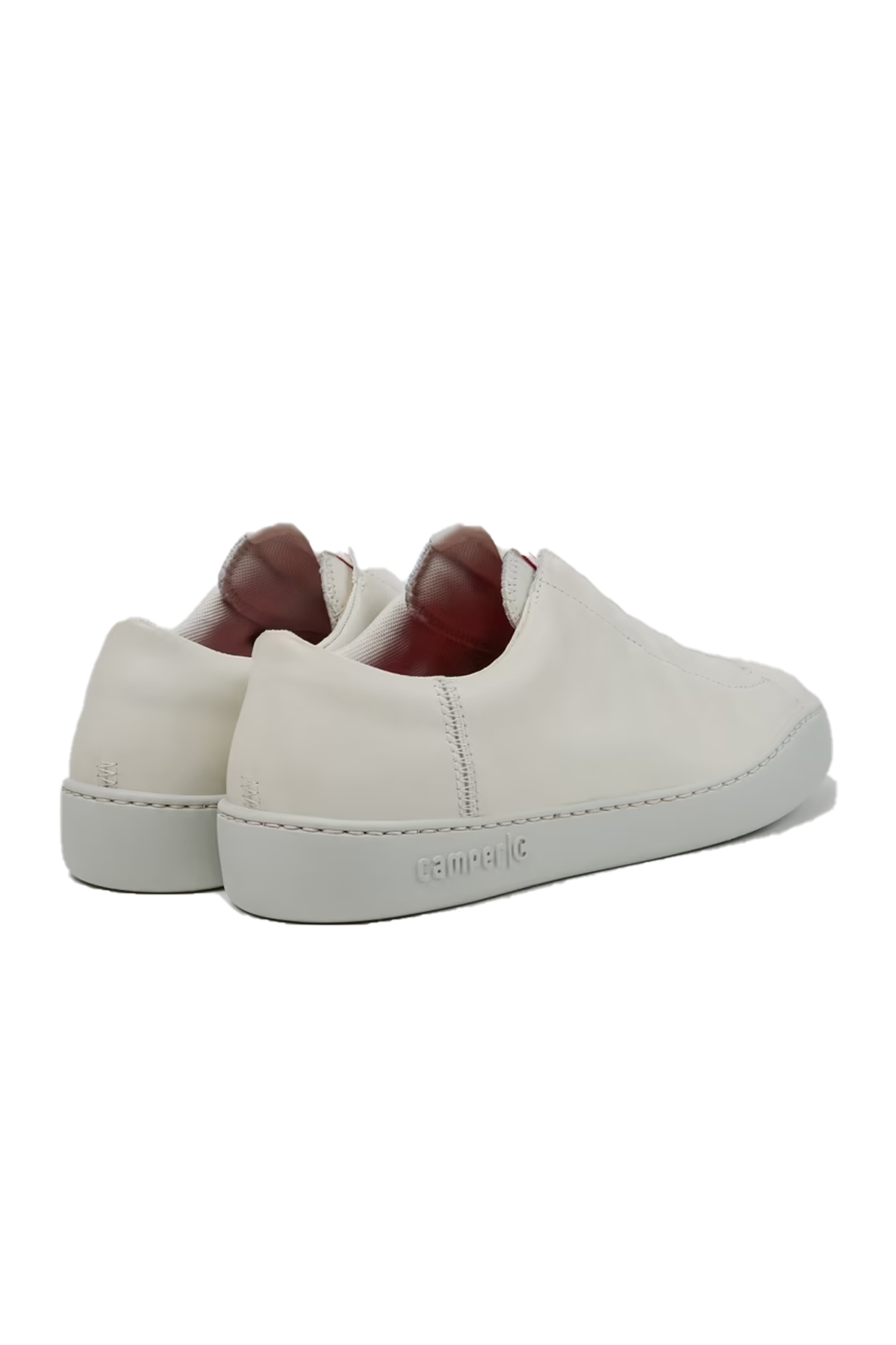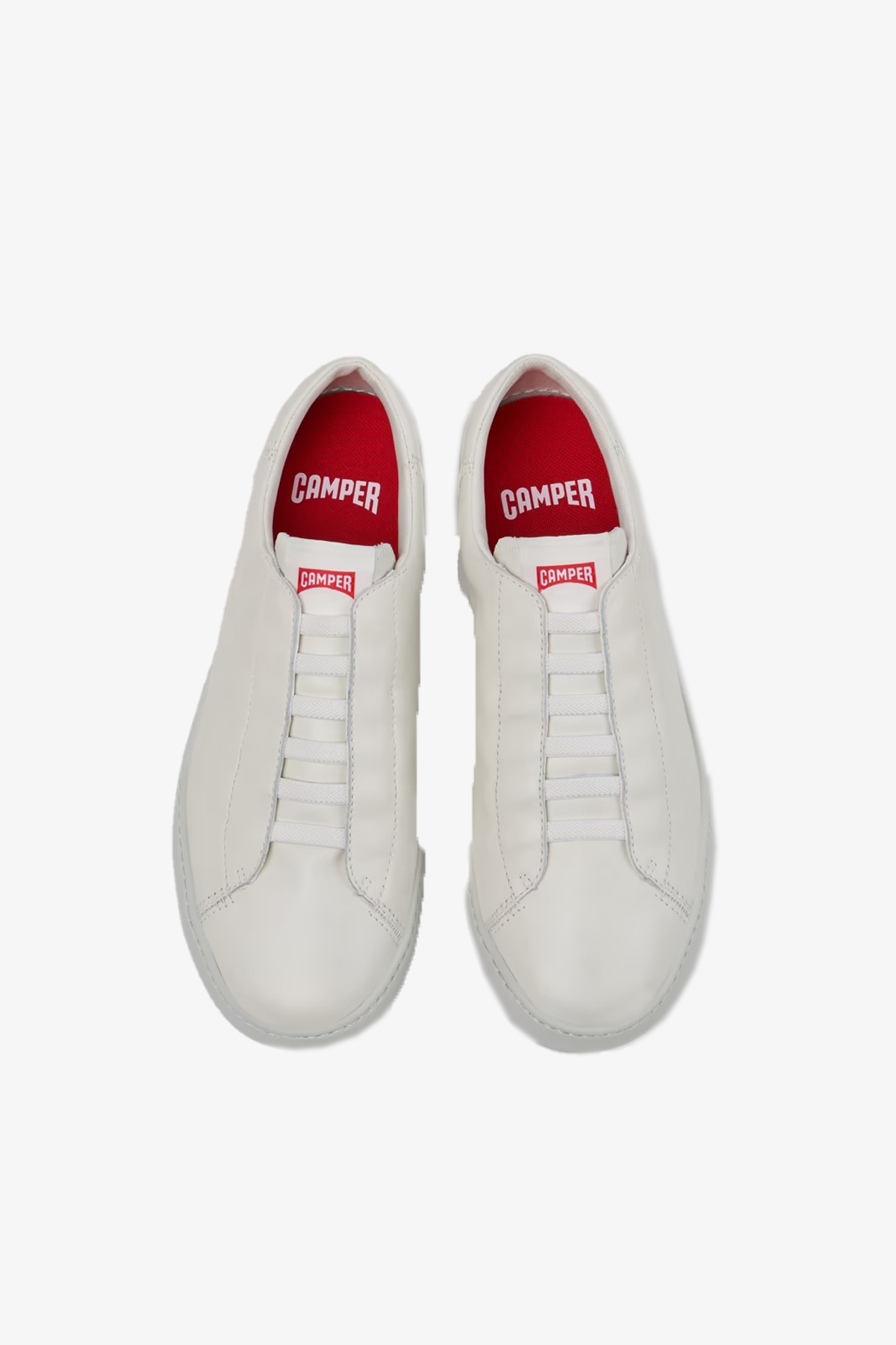 Çıkarılabilir OrthoLite® Recycled™ iç tabanlık, elastik bağcıklar ve EVA dış taban ( %20 geri dönüştürülmüş) ile erkekler için beyaz dana derisi spor ayakkabı.