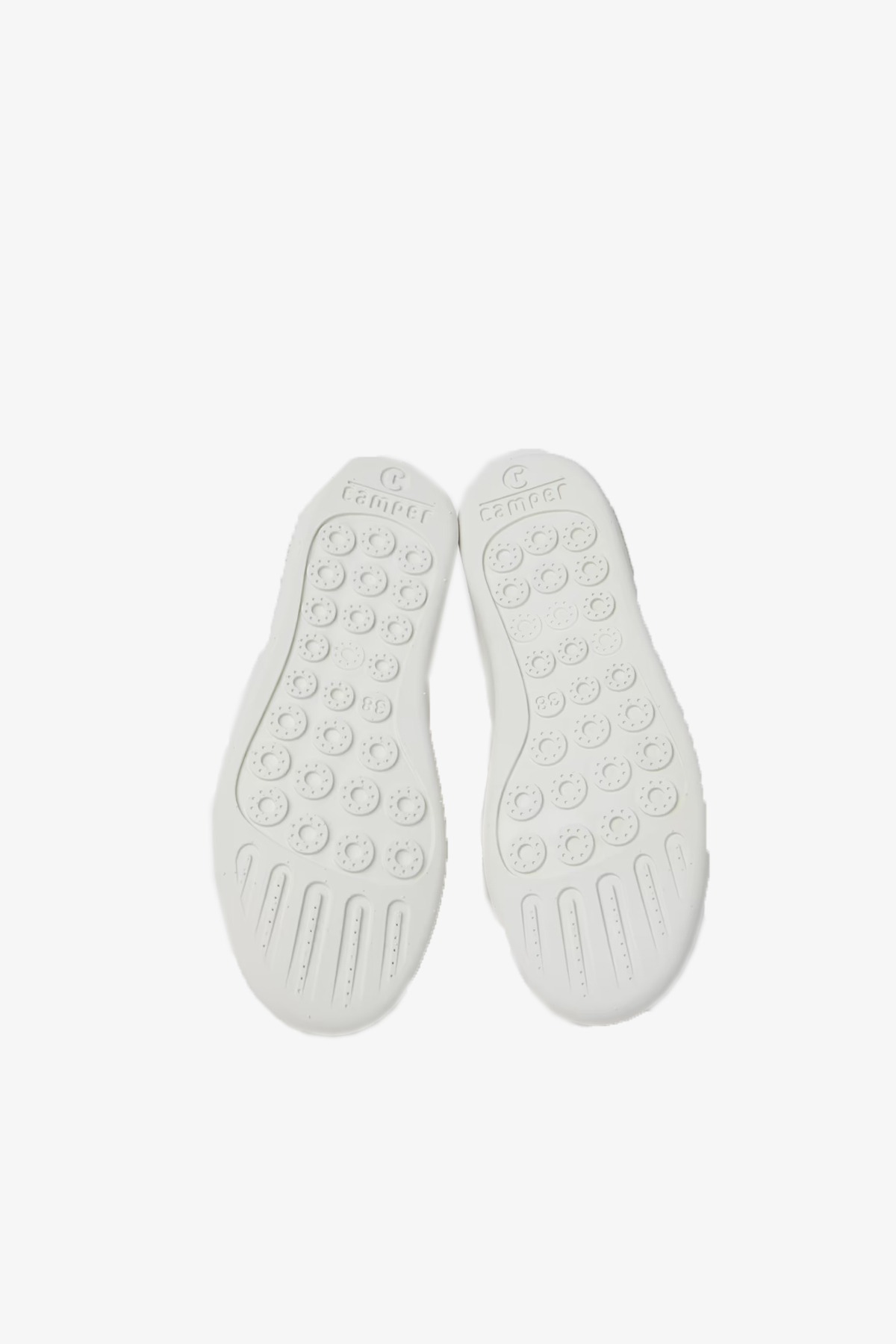 Kadınlar için beyaz, dikişsiz yapıda ve geri dönüştürülmüş teknik malzemelerden üretilen sneakerlar, çıkarılabilir OrthoLite® Recycled™ iç tabanlar, elastik bağcıklar ve EVA dış tabanlar (%20 geri dönüştürülmüş) özelliğine sahiptir.