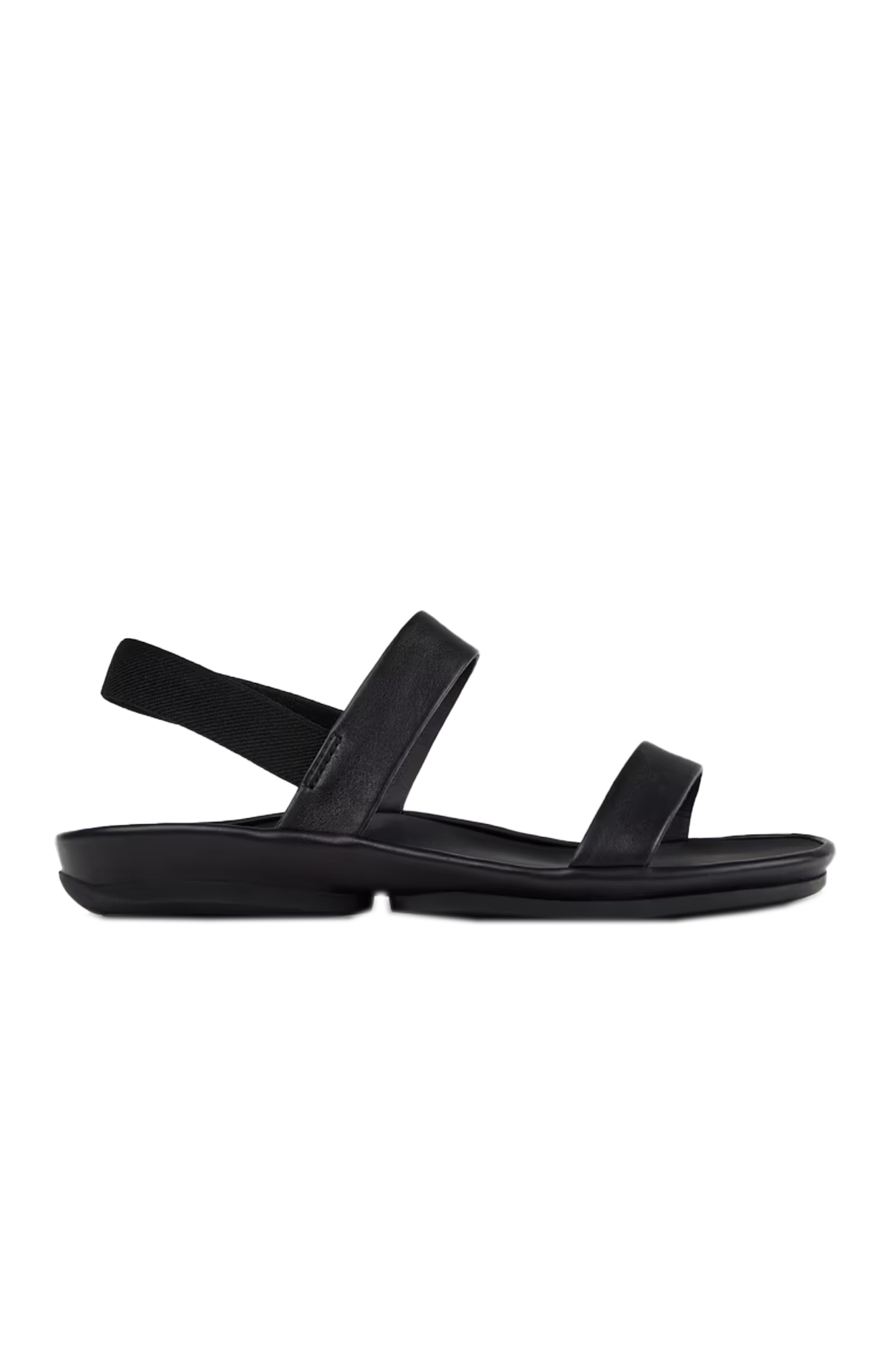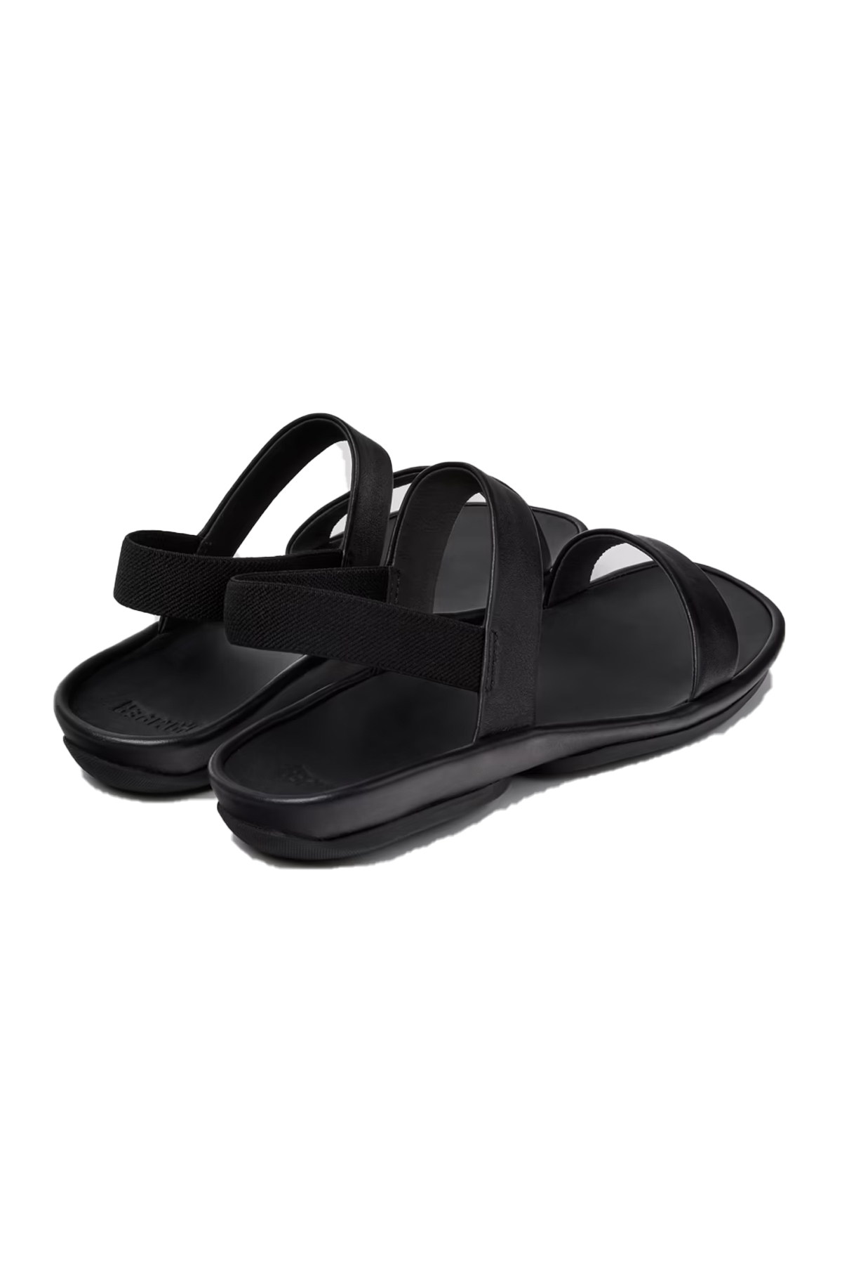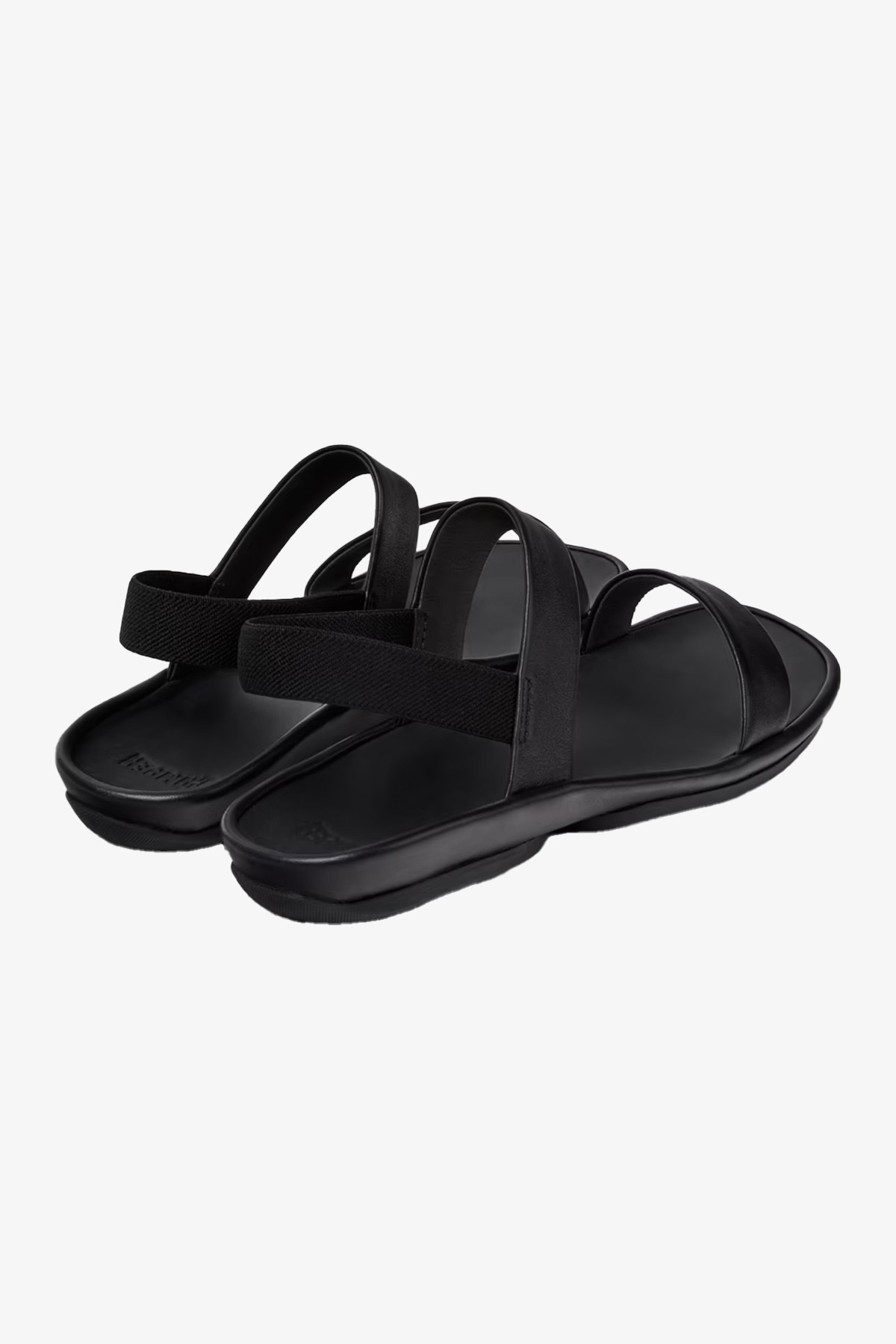 Kadınlar için siyah dana derisi sandaletler; çıkarılamayan PU iç tabanlar ve kauçuk dış tabanlar (%20 geri dönüştürülmüş).