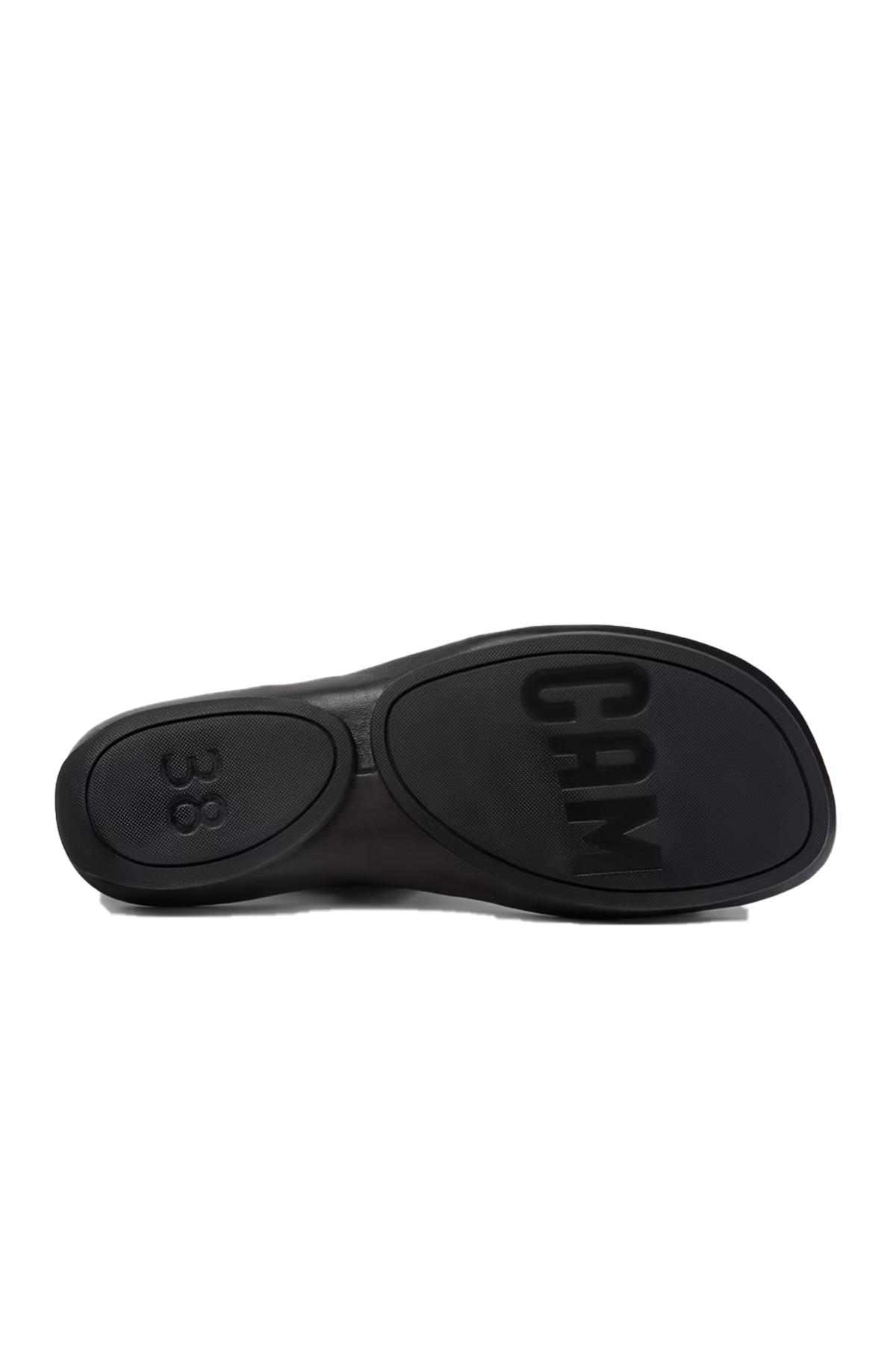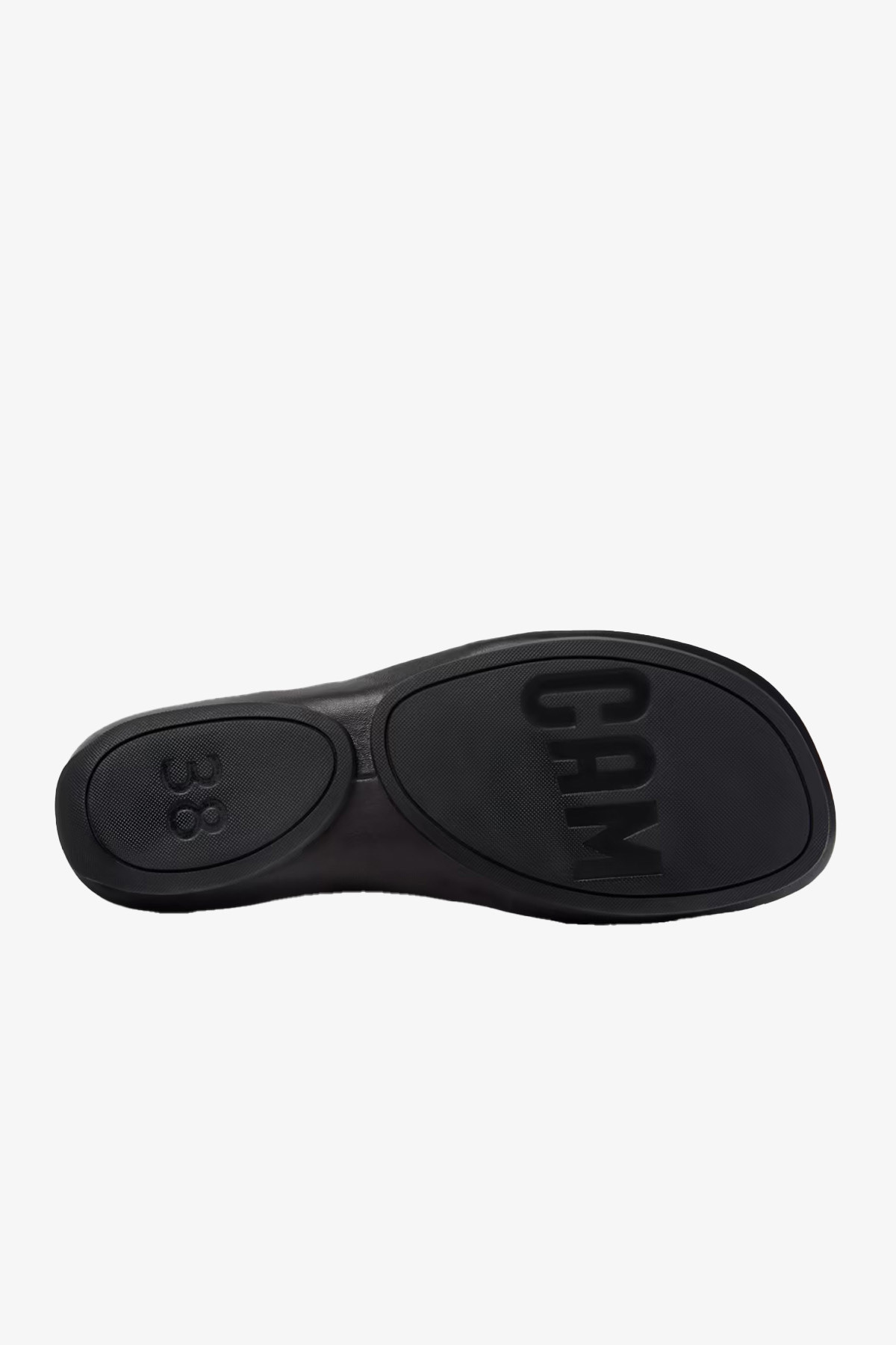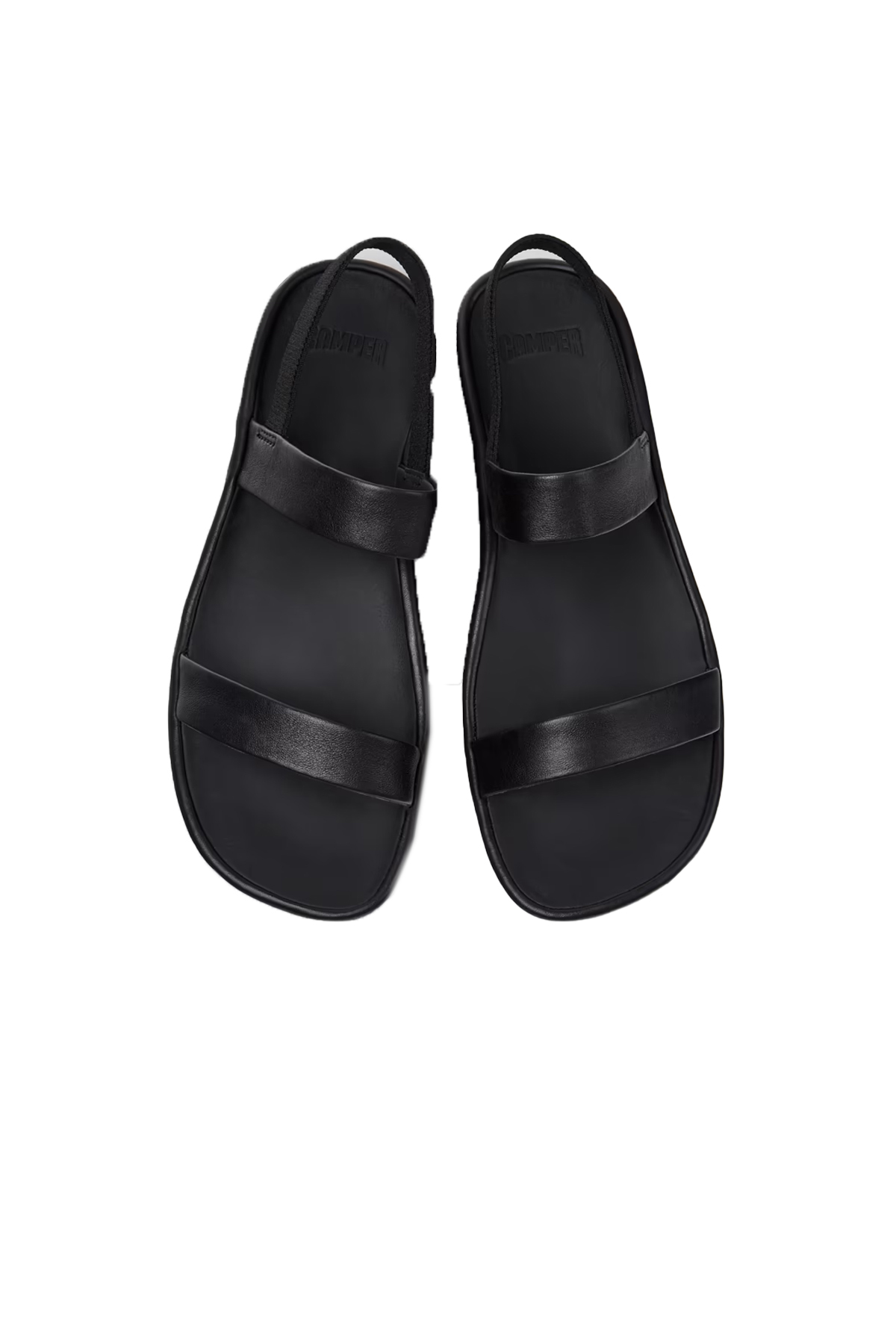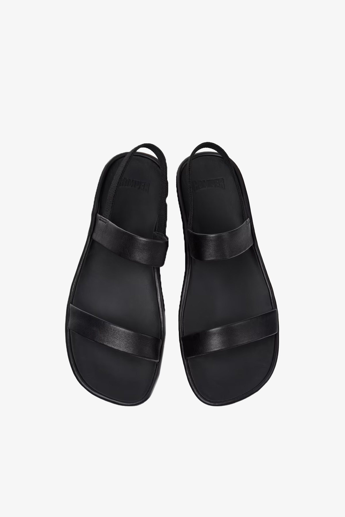 Kadınlar için siyah dana derisi sandaletler; çıkarılamayan PU iç tabanlar ve kauçuk dış tabanlar (%20 geri dönüştürülmüş).