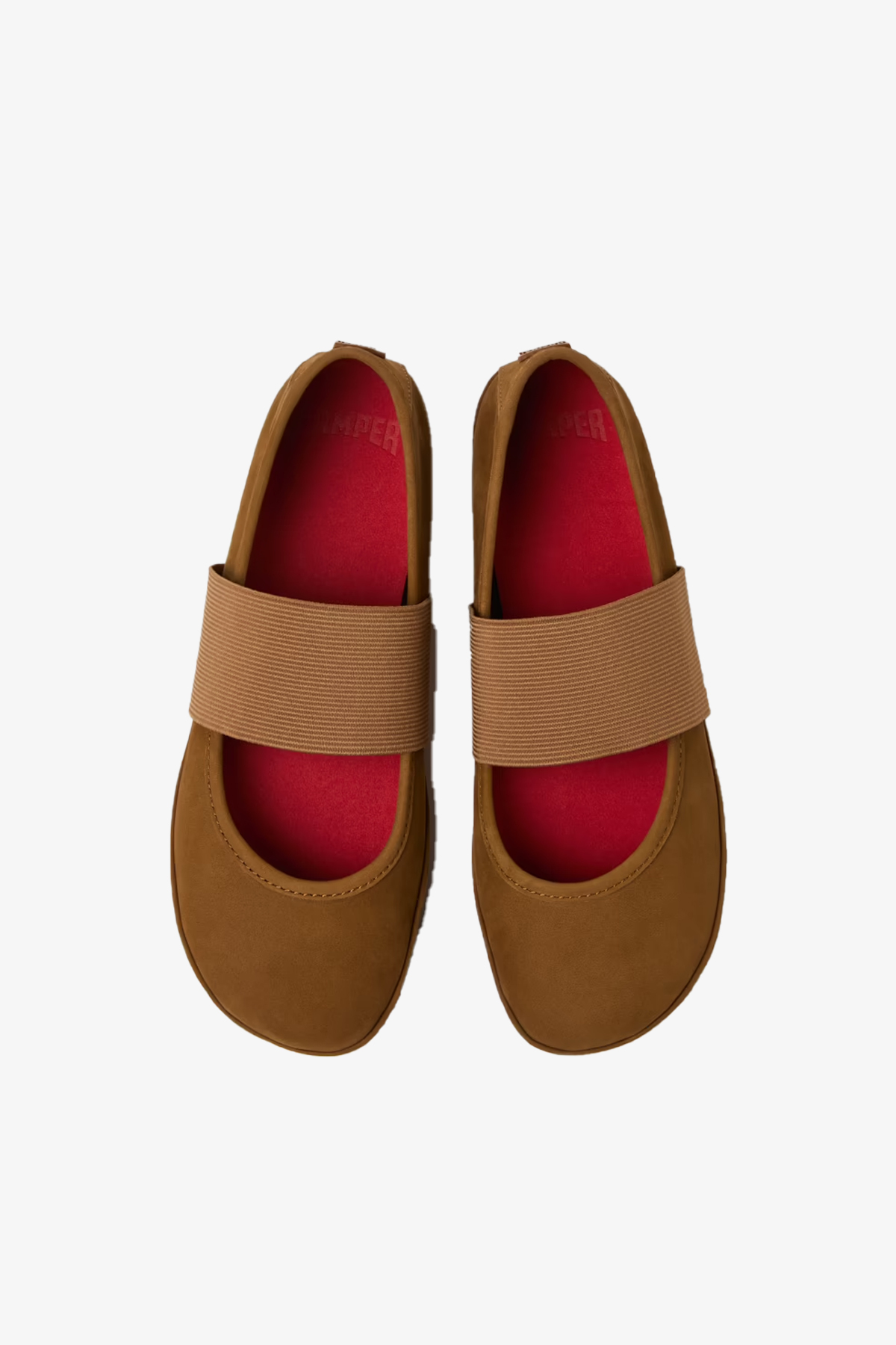 Camper Right Nina Kadın Kahverengi Babet 21595-265EVA tabanlık ve kauçuk dış tabana sahip, kahverengi nubuktan kadın babeti.