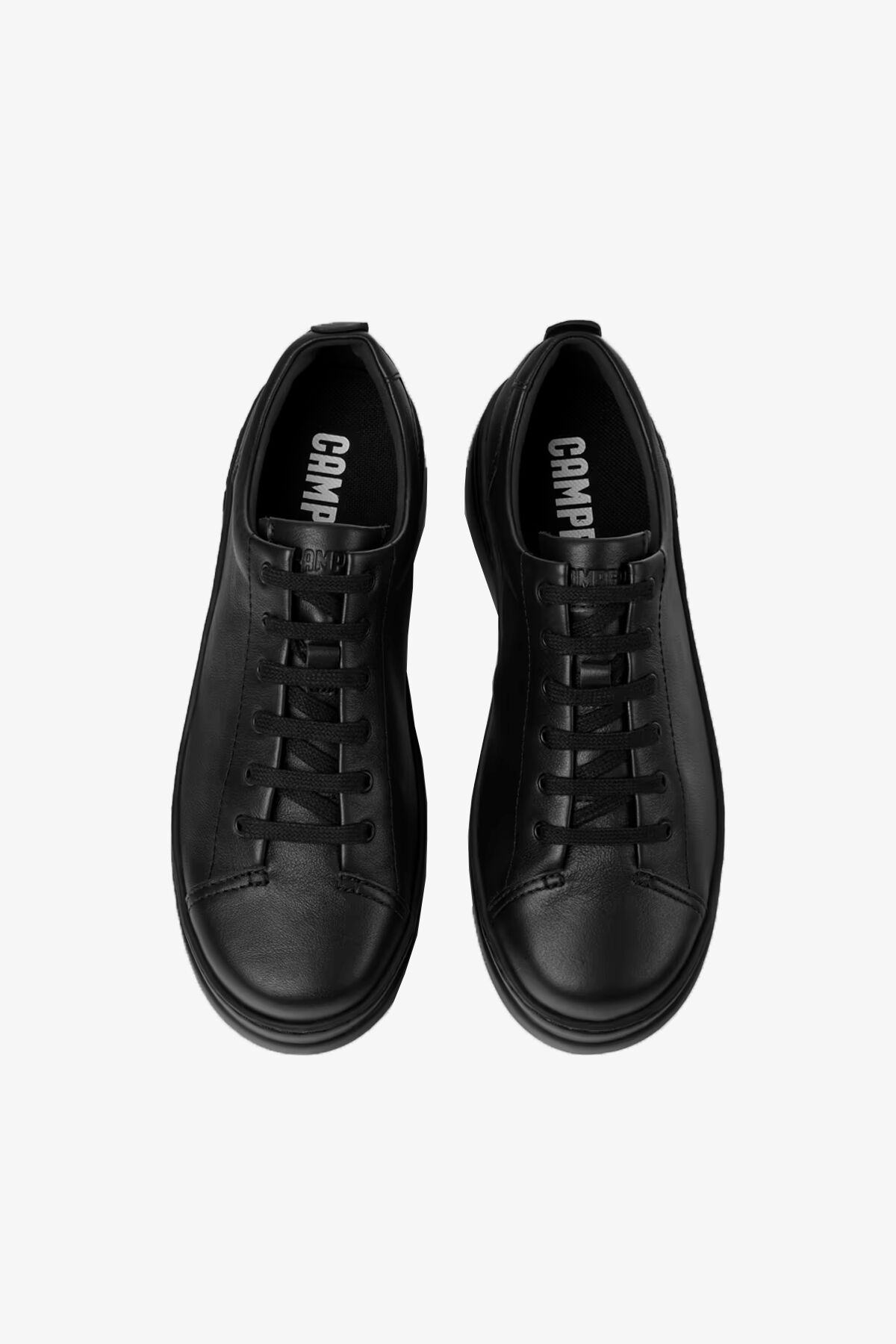 Siyah deri kadın spor ayakkabılar, çıkarılabilir OrthoLite® Recycled™ tabanlıklar ve XL EXTRALIGHT® Organix™ 3.0 tabanlar (%30 biyo-dairesel bileşikler).